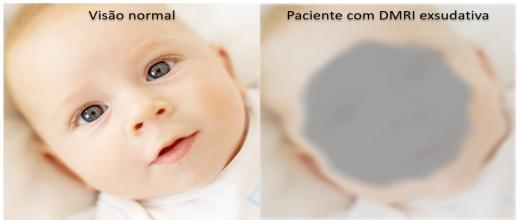 A DMRI provoca a deterioração da mácula, a região central da retina responsável pela nitidez da visão. Existem duas formas de DMRI: seca e exsudativa (ou neovascular). Embora apenas cerca de 10% dos pacientes com DMRI apresentem a forma exsudativa da doença, ela é responsável por 90% dos casos de cegueira. A forma exsudativa caracteriza-se pelo crescimento de vasos sanguíneos sob a retina que provocam sangramento e fibrose.